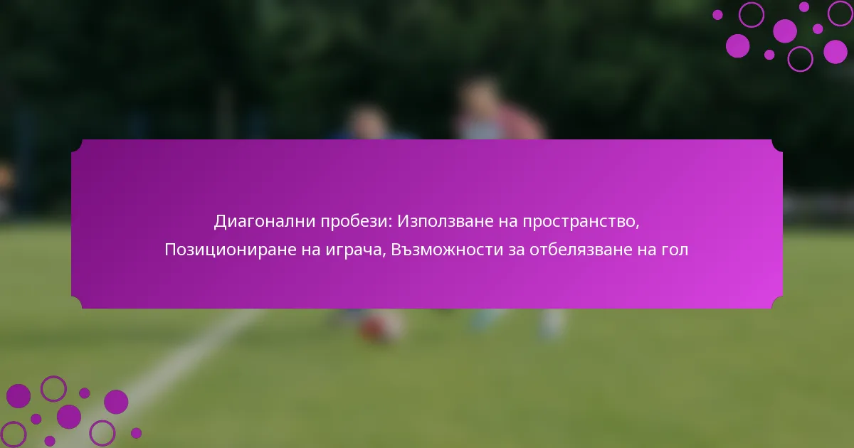 Диагоналните бягания се правят от играчи, които се движат под ъгъл към вратата, което може да изведе защитниците от позиция. Този тип бягане може да създаде пропуски, които съотборниците да експлоатират, улеснявайки по-добри опции за подаване и увеличавайки вероятността за пробив в защитните линии.